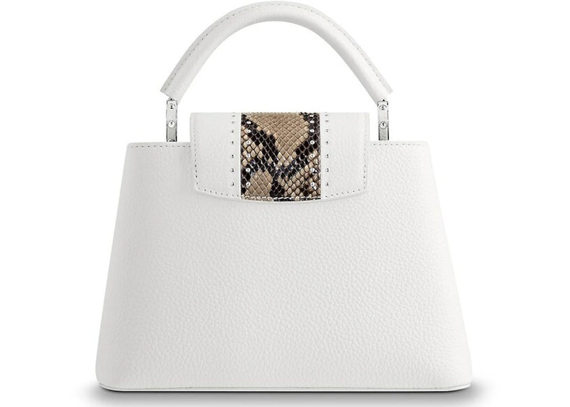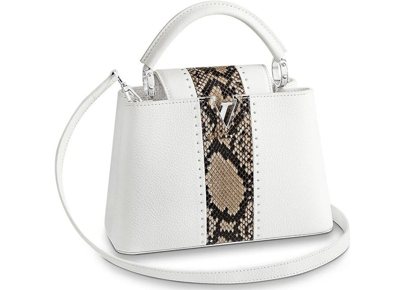 The Louis Vuitton Capucines Python Stripe BB White is now available at Side Kicks!