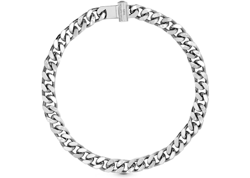 The Louis Vuitton Chain Links Necklace Engraved Monogram Silver is now available at Side Kicks!