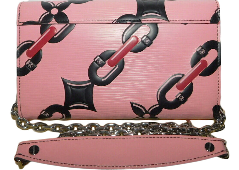 The Louis Vuitton Chain Wallet Twist Epi Chain Flower Pink is now available at Side Kicks!