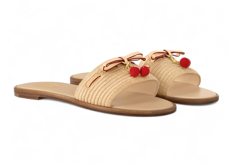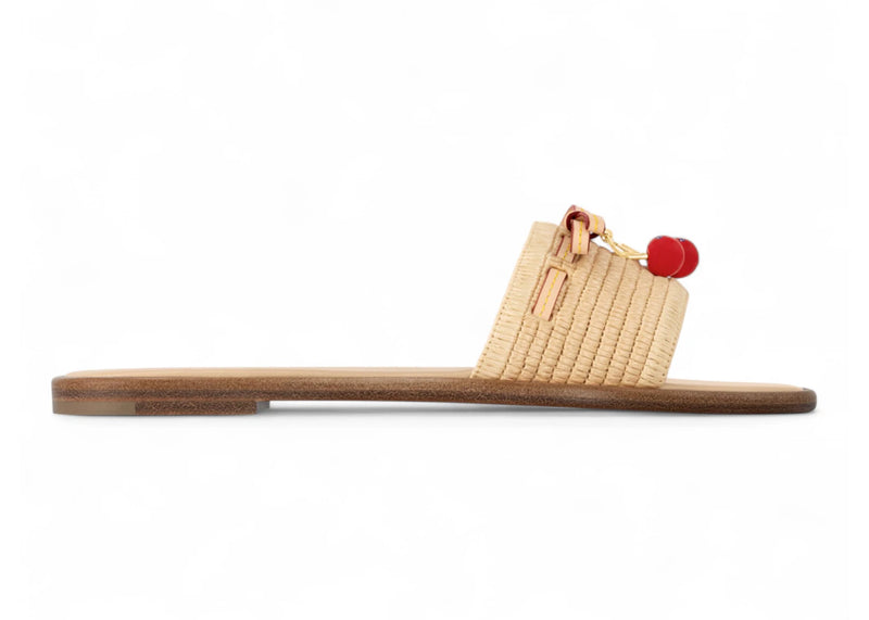 The Louis Vuitton Cherry Lily Flat Mule x Takashi Murakami Raffia is now available at Side Kicks!