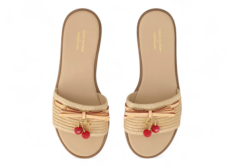 Louis Vuitton Cherry Lily Flat Mule x Takashi Murakami Raffia