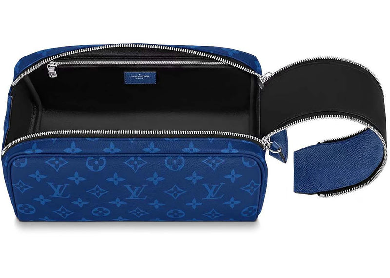 The Louis Vuitton Dopp Kit Toilet Pouch Cobalt Blue is now available at Side Kicks!