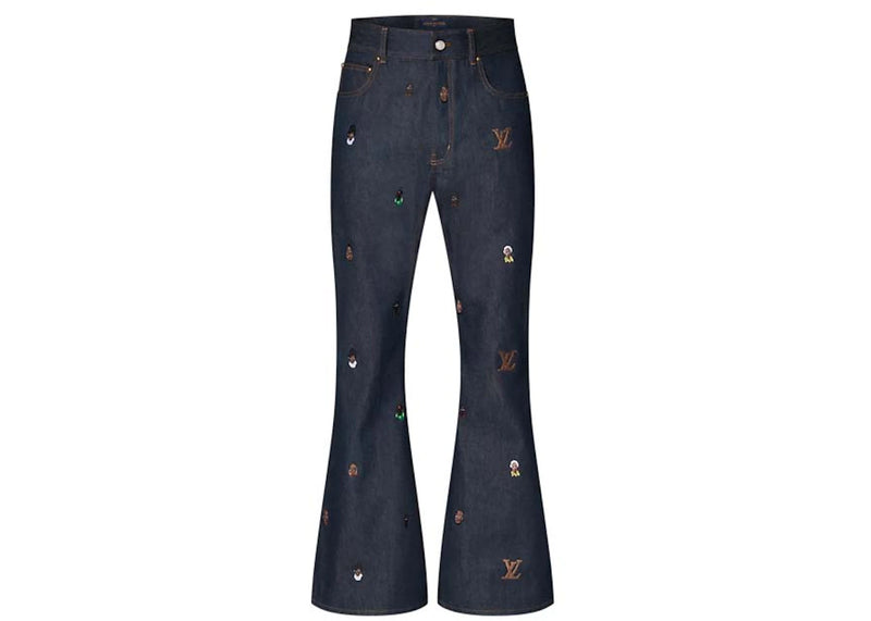 The Louis Vuitton Embroidered Bootcut Denim Pants Henry Taylor Indigo is now available at Side Kicks!
