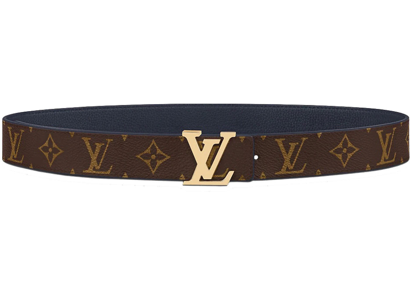 The Louis Vuitton LV Initiales 30MM Reversible Belt Blue/Monogram is now available at Side Kicks!