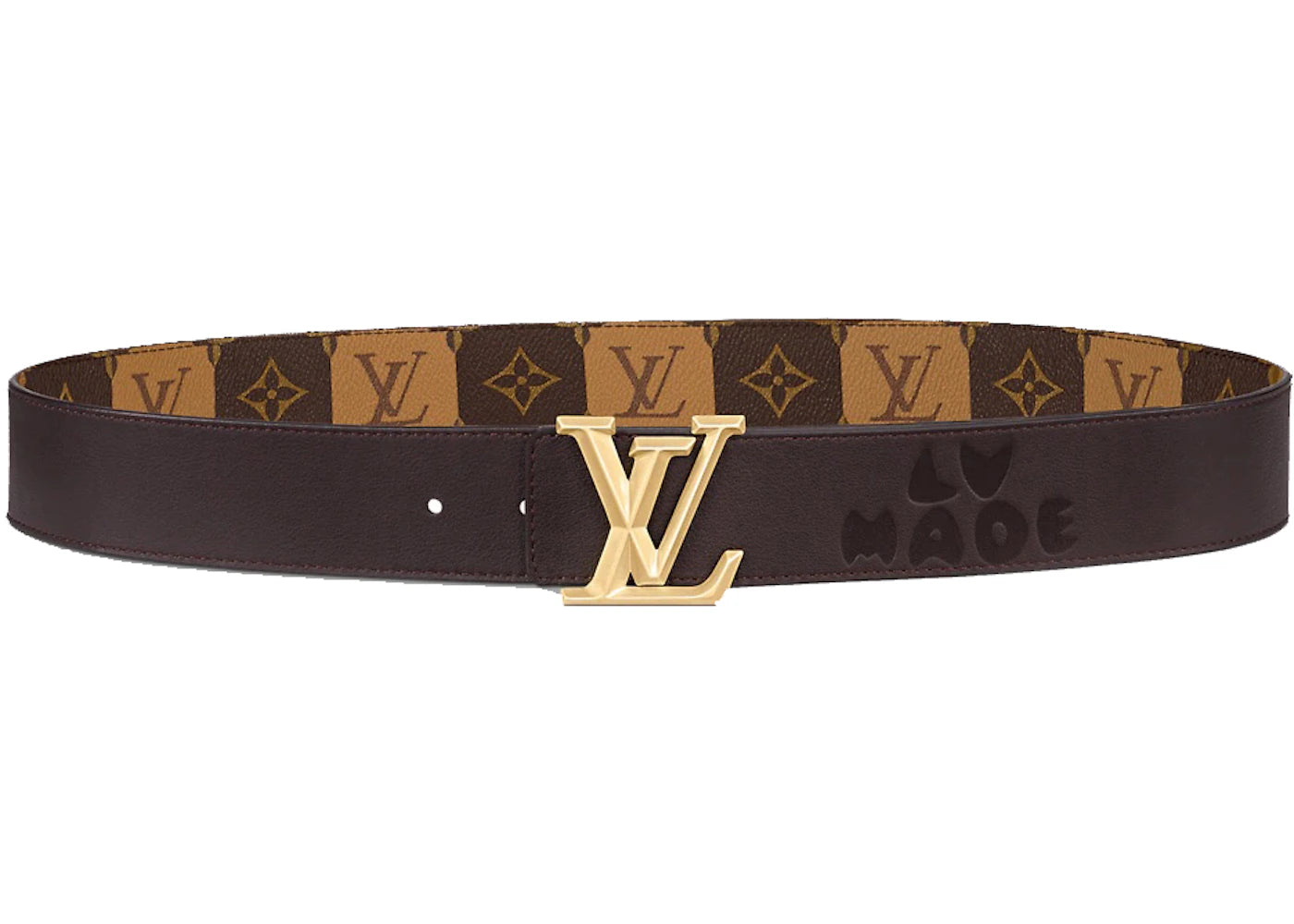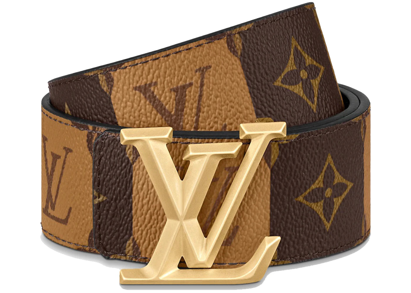 The Louis Vuitton LV Pyramide Stripes 40MM Reversible Belt Monogram Brown is now available at Side Kicks!