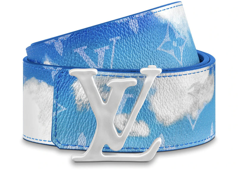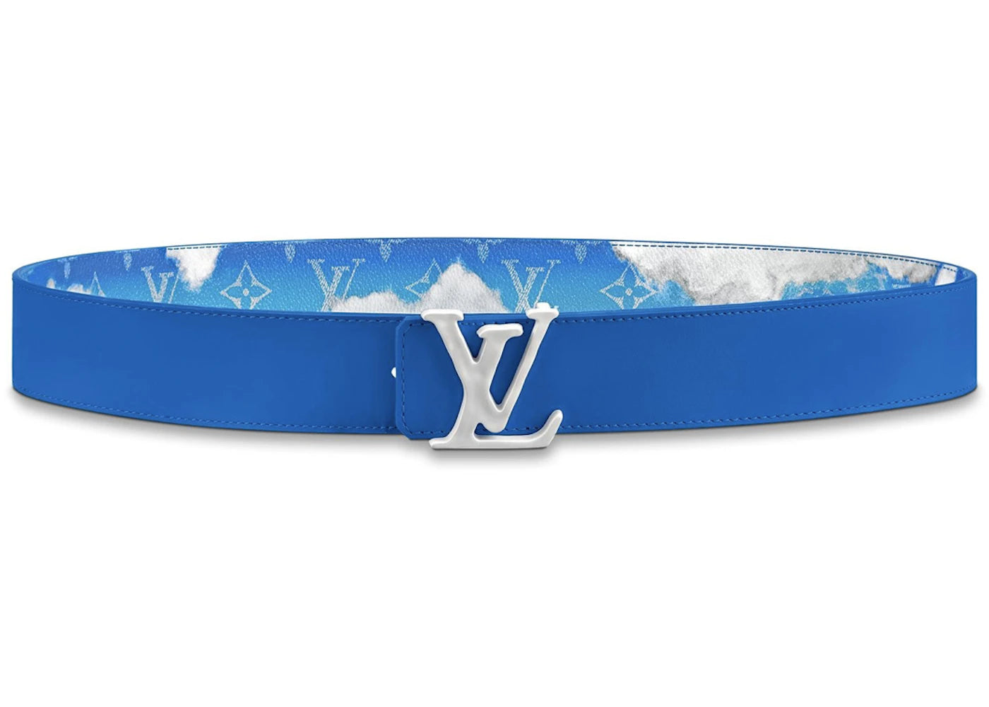 The Louis Vuitton LV Shape Reversible Belt Clouds Monogram 40MM Blue is now available at Side Kicks!