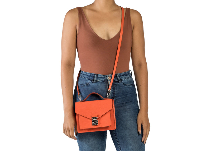 The Louis Vuitton Top Handle Monceau Epi BB Piment is now available at Side Kicks!