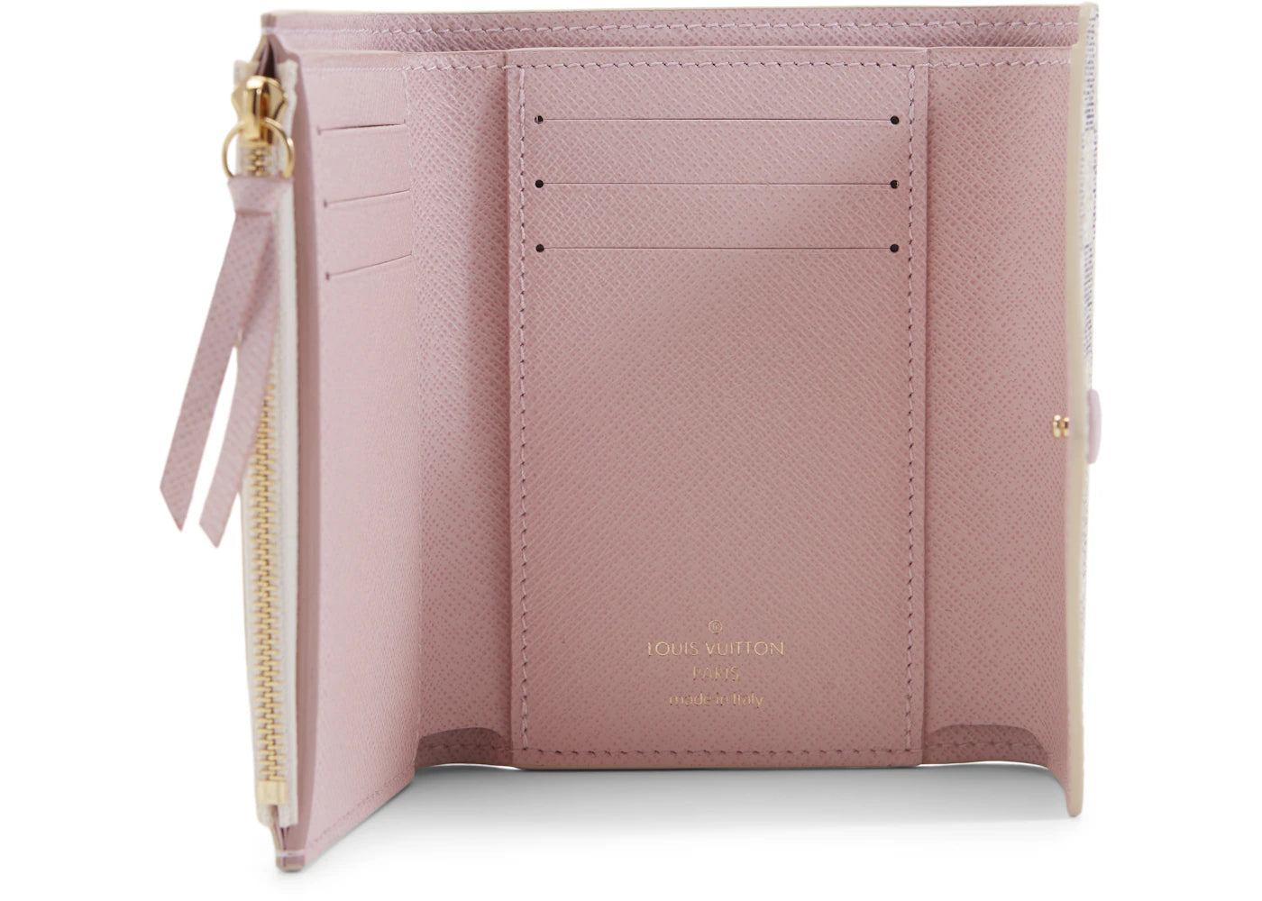 The Louis Vuitton Victorine Wallet Damier Azur White/Rose Ballerine is now available at Side Kicks!