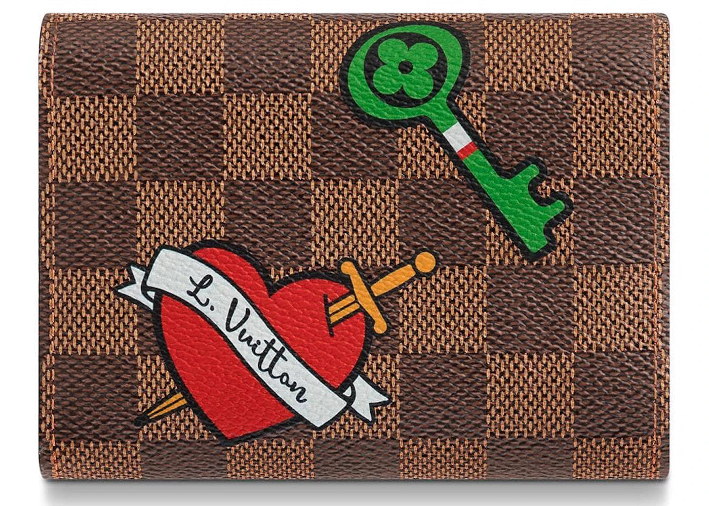 Louis Vuitton Victorine Wallet Damier Ebene Stories Red Lining