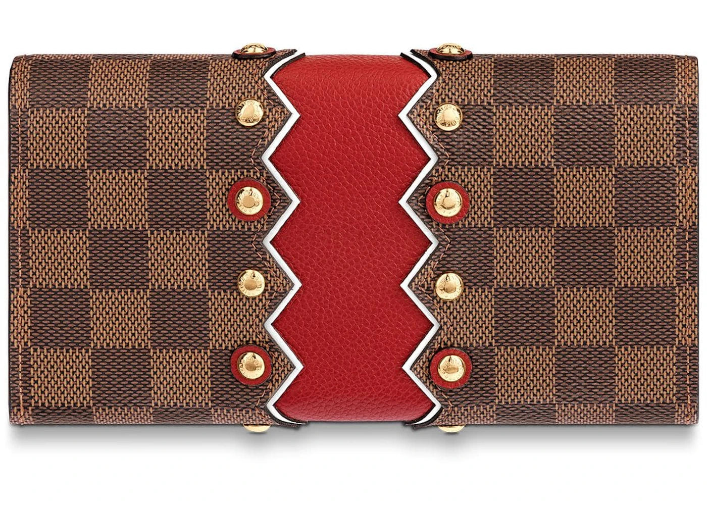 The Louis Vuitton Wallet Sarah Damier Ebene Karakoram Rubis Red Brown is now available at Side Kicks!