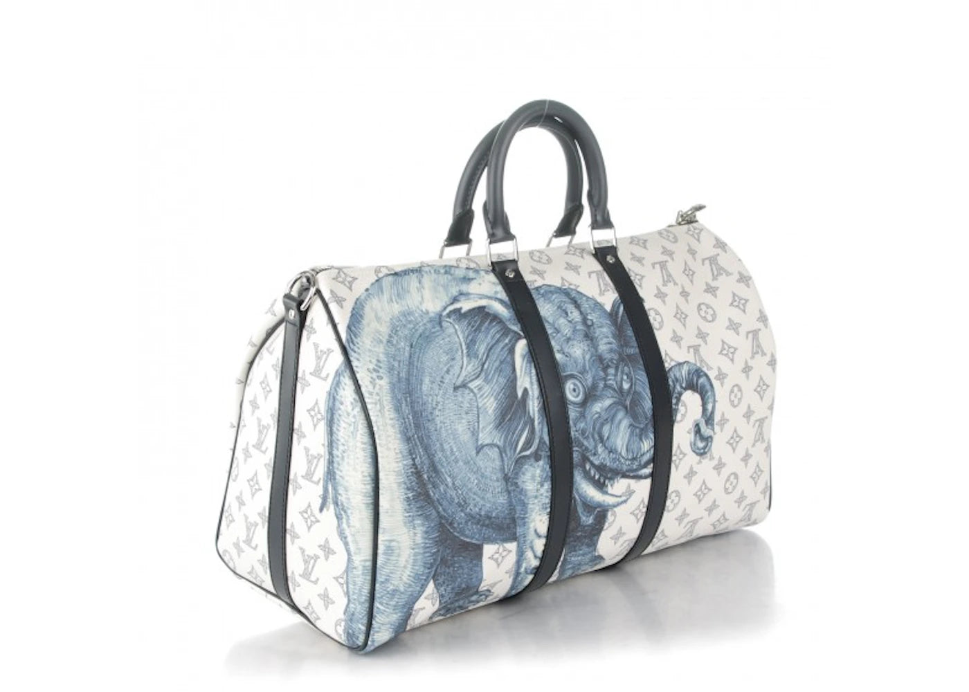The Louis Vuitton x Chapman Brothers Keepall Bandouliere Monogram Savane Ink 45 Blue/Grey is now available at Side Kicks!