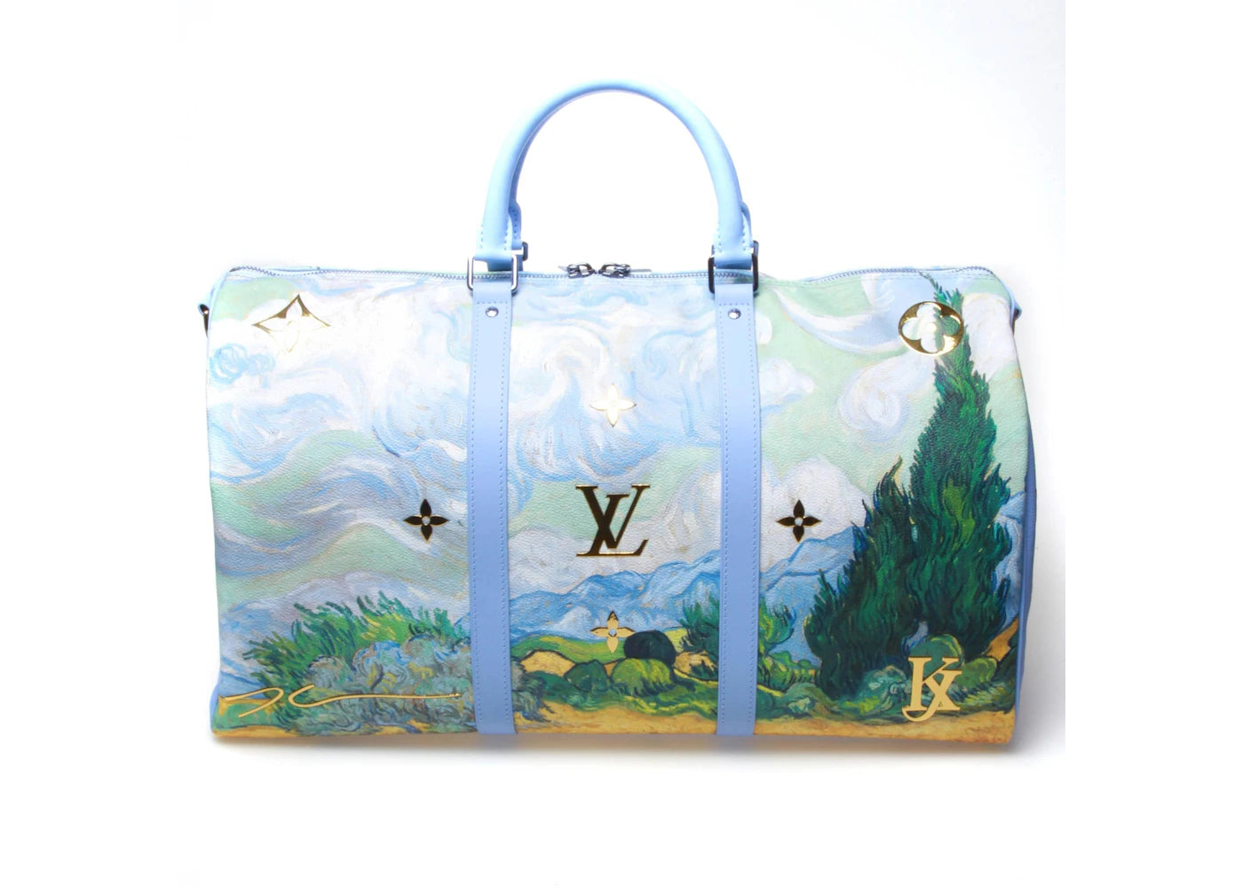 The Louis Vuitton x Jeff Koons Keepall Bandouliere Vincent Van Gogh Masters 50 Lavender Multicolor is now available at Side Kicks!