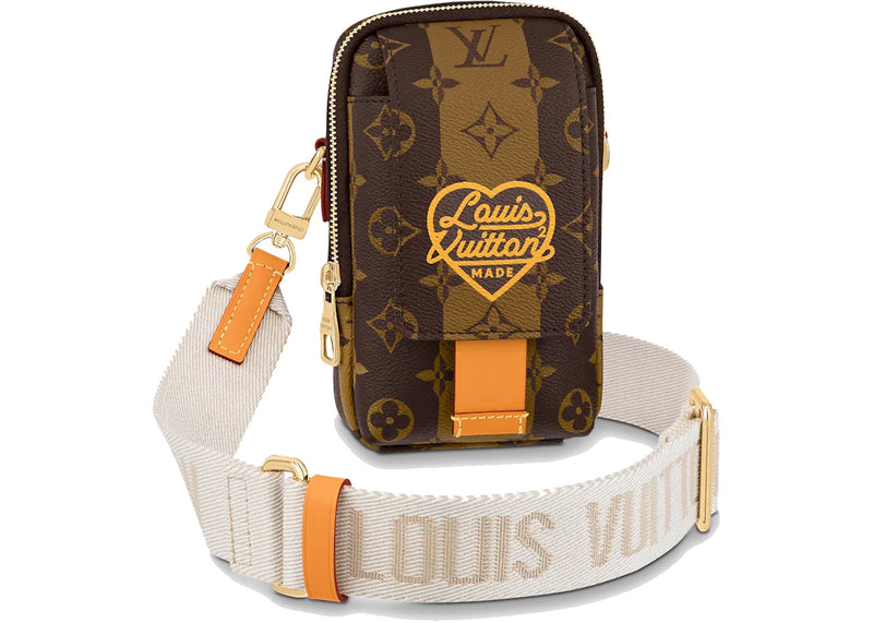 The Louis Vuitton x Nigo Flap Double Phone Pouch Brown is now available at Side Kicks!