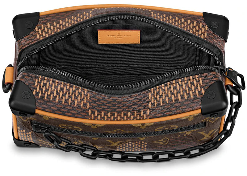 The Louis Vuitton x Nigo Soft Trunk Damier Ebene Giant Mini Brown is now available at Side Kicks!