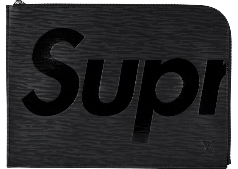 The Louis Vuitton x Supreme Pochette Jour Epi GM Black is now available at Side Kicks!