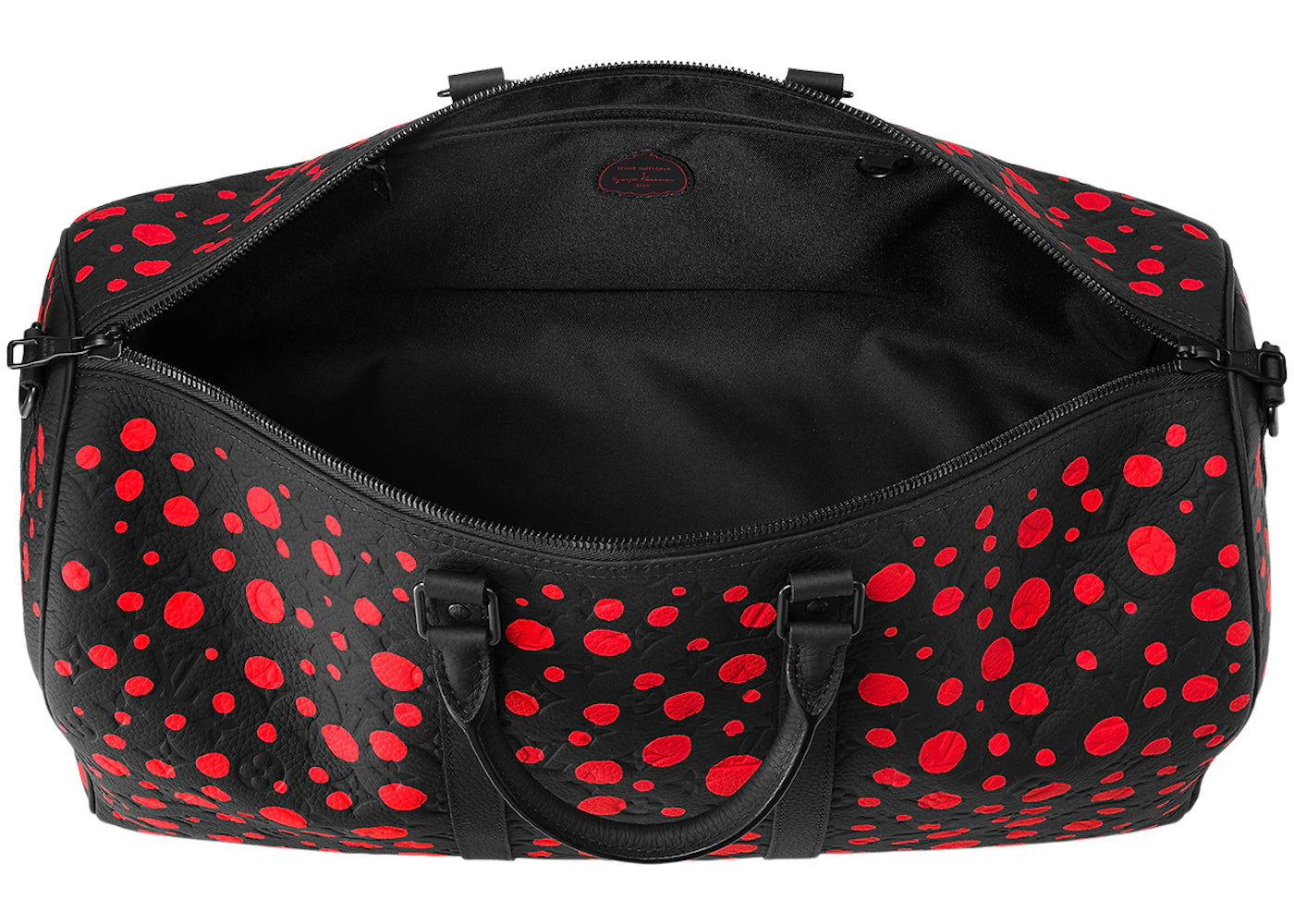 The Louis Vuitton x Yayoi Kusama Keepall 50 Black/Red is now available at Side Kicks!