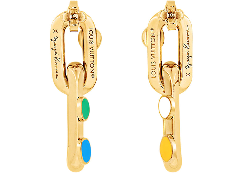 The Louis Vuitton x Yayoi Kusama LV Edge Painted Dots Earrings Gold is now available at Side Kicks!