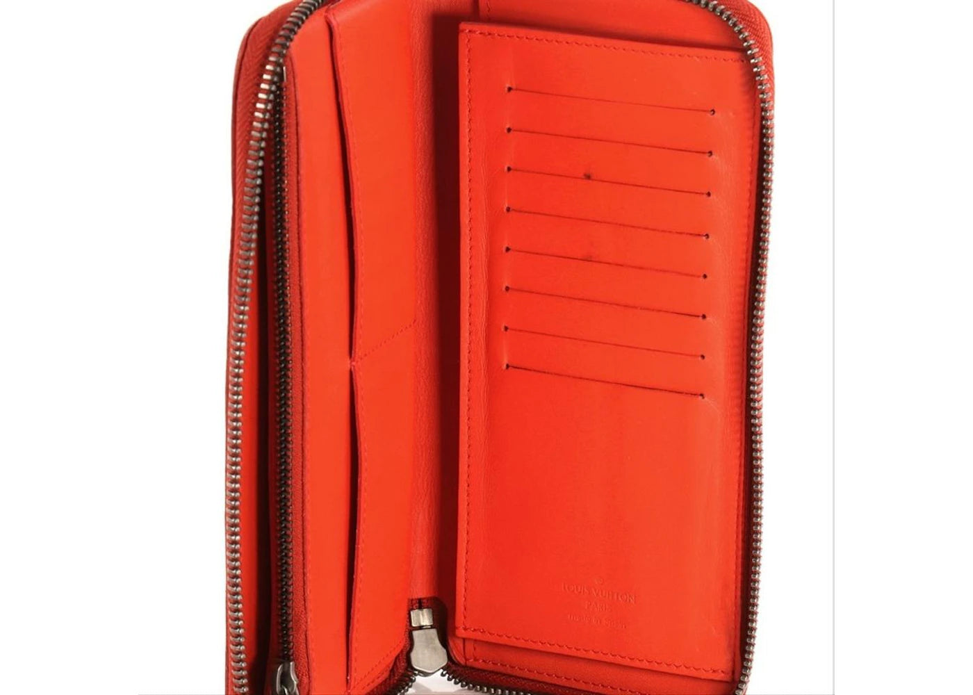 The Louis Vuitton Zippy Vertical Wallet Damier Infini Red is now available at Side Kicks!