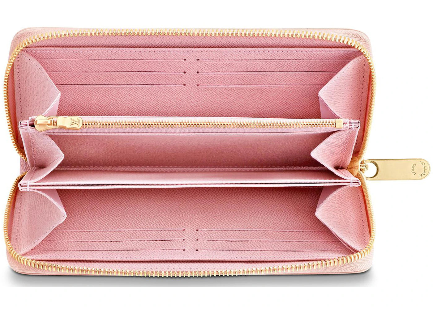 The Louis Vuitton Zippy Wallet Damier Azur Rose Ballerine Lining is now available at Side Kicks!