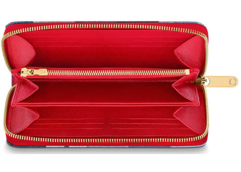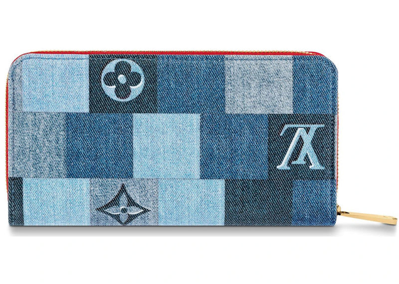 The Louis Vuitton Zippy Wallet Denim Monogram Check Blue/Red is now available at Side Kicks!