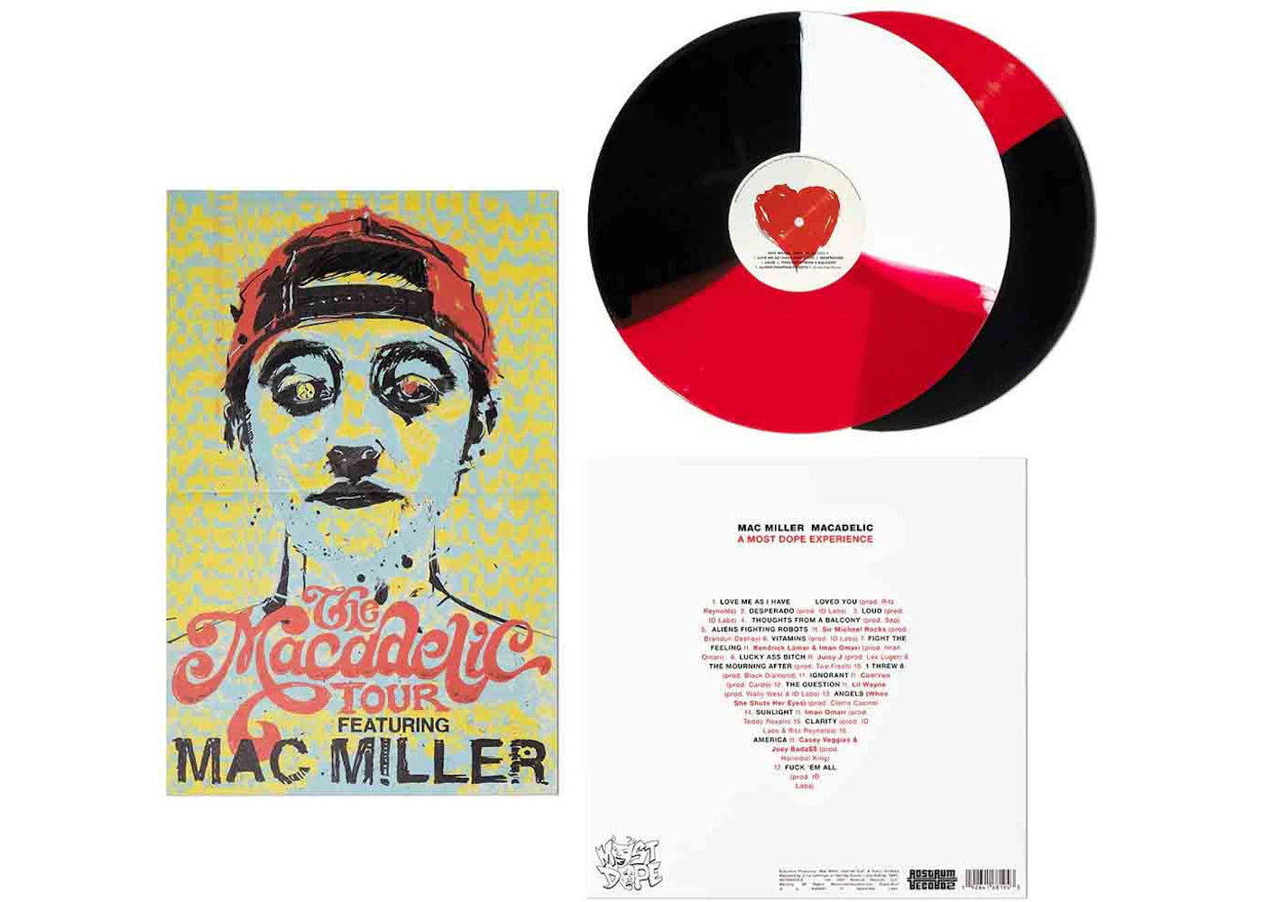 The Mac Miller Macadelic 10th Anniversary Deluxe 2XLP Vinyl (Black/Red/White) was released on March 24th, 2022 for a retail price of $35.