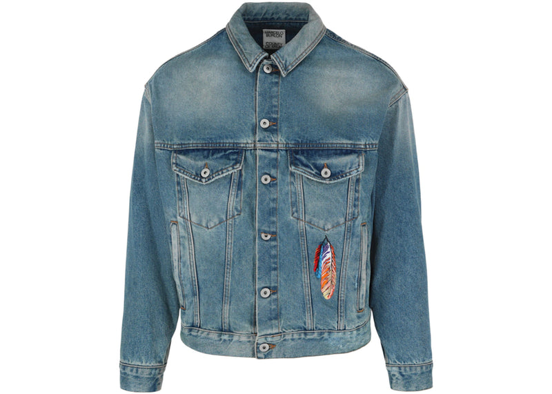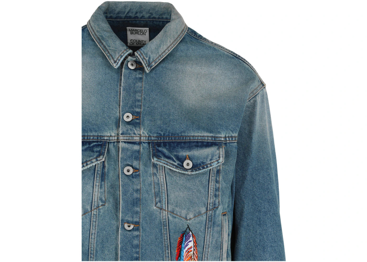The Marcelo Burlon Feathers Vintage Wash Denim Jacket Blue is now available at Side Kicks!
