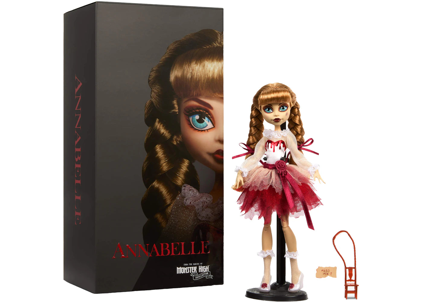 The Mattel Monster High Annabelle Skullector Doll draws inspiration from the demonically possessed doll first seen in the movie The Conjuring and later in the sequels Annabelle (2014), Annabelle: Creation (2017), and Annabelle Comes Home (2019).