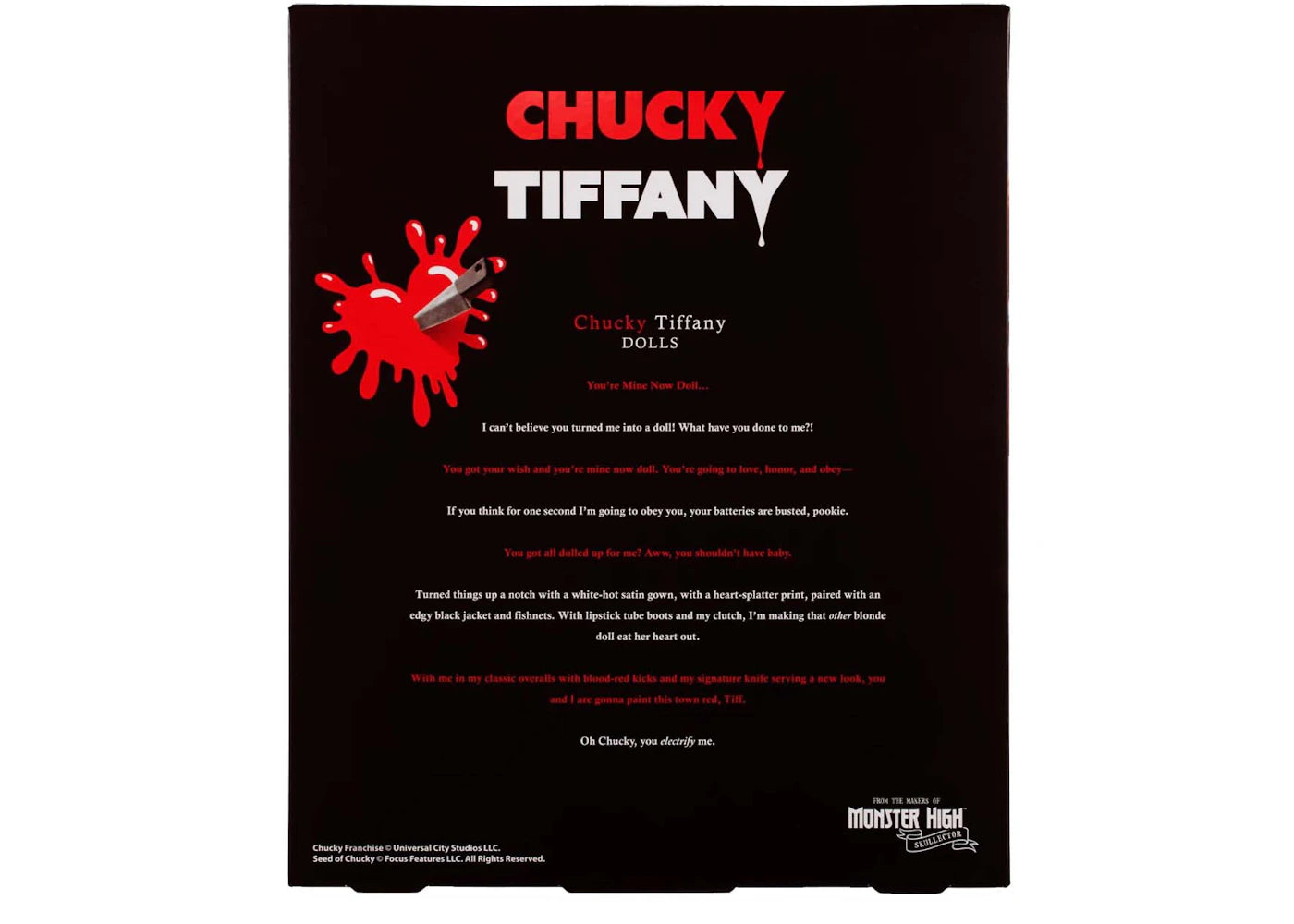 The Mattel Monster High Skullector Chucky and Tiffany Doll 2 Pack is a must-have for horror movie fans and collectors alike. This limited edition set features two iconic characters from the Child's Play franchise, Chucky and Tiffany, in their signature outfits and with highly detailed facial features. The dolls are made of high-quality materials and stand at 10 inches tall, making them perfect for display on shelves or in glass cases. Chucky comes with his signature knife and Good Guys box, while Tiffany comes with her bridal bouquet and a bottle of champagne. The dolls are dressed in their classic outfits, with Chucky wearing his striped shirt and overalls, and Tiffany in her white wedding dress and leather jacket. The attention to detail in their clothing and accessories is impressive, making these dolls a true collector's item. The Mattel Monster High Skullector Chucky and Tiffany Doll 2 Pack is set to release on May 1st, 2023, with a retail price of $90. This set is sure to sell out quickly, so be sure to grab yours before they're gone. Something we love about the Mattel Monster High Skullector Chucky and Tiffany Doll 2 Pack is the level of detail put into each doll's outfit and accessories. Our experts think the standout feature of this set is the inclusion of both Chucky and Tiffany, making it a must-have for fans of the franchise. Overall, we think this set is a great addition to any horror movie or doll collection.