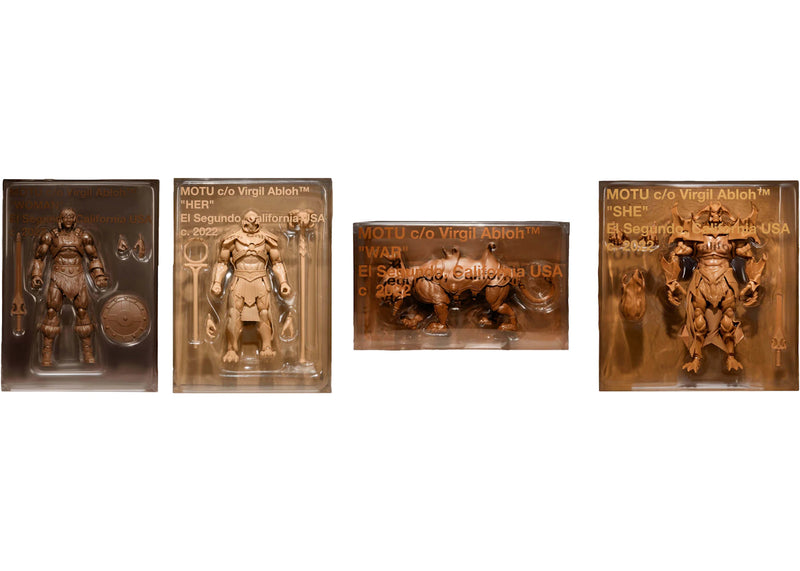 Our experts at StockX appreciate that each 7-inch figurine includes a comic book and an art print. The Mattel Virgil Abloh x Masters of the Universe He-Man Skeletor Battle Cat Skele-God Collector Action Figures Set of 4 was released on October 21, 2022, and sold for $240.