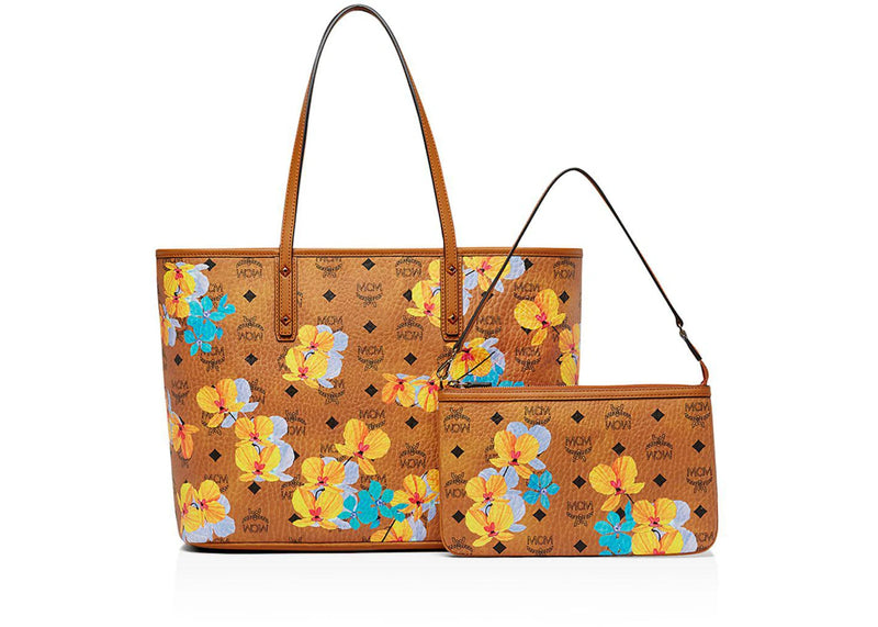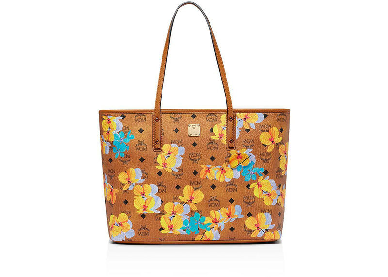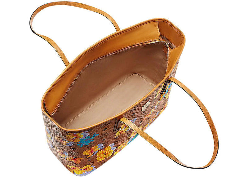 MCM Anya Top Zip Shopper Visetos Flower Medium Cognac
