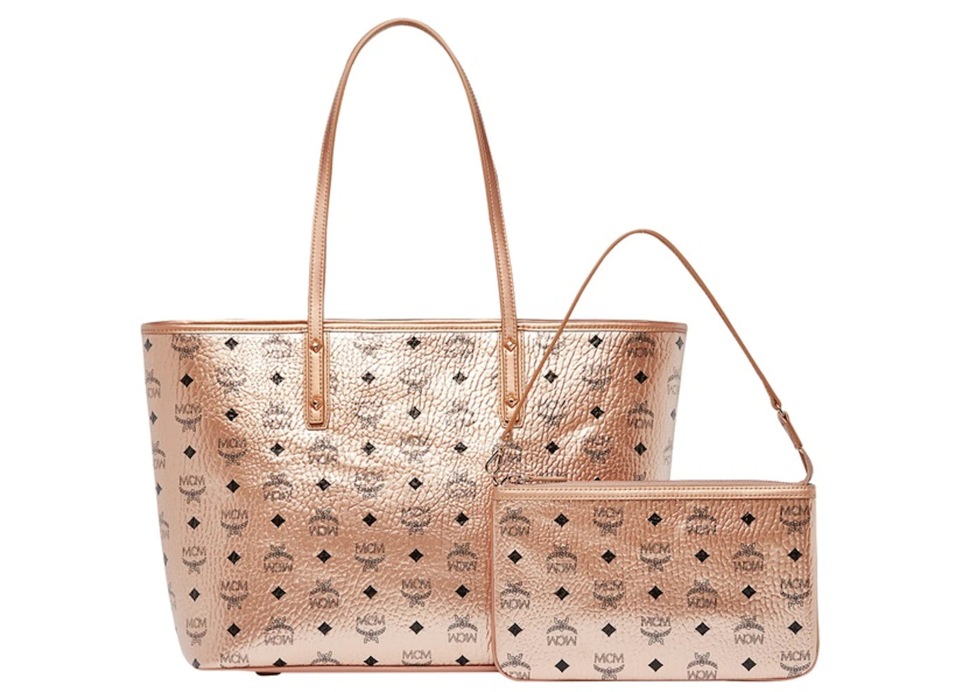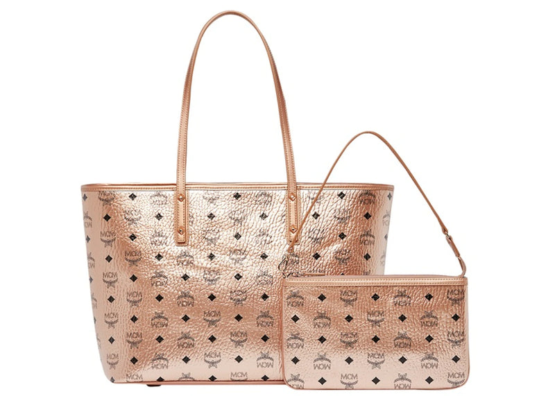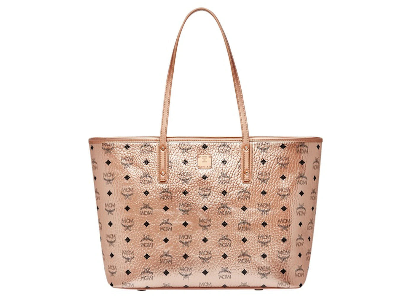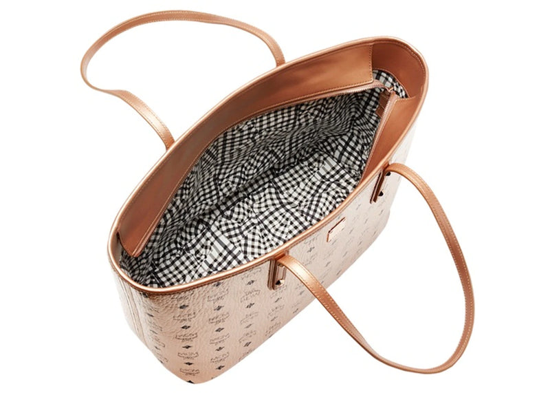MCM Anya Top Zip Shopper Visetos Medium Champagne Gold
