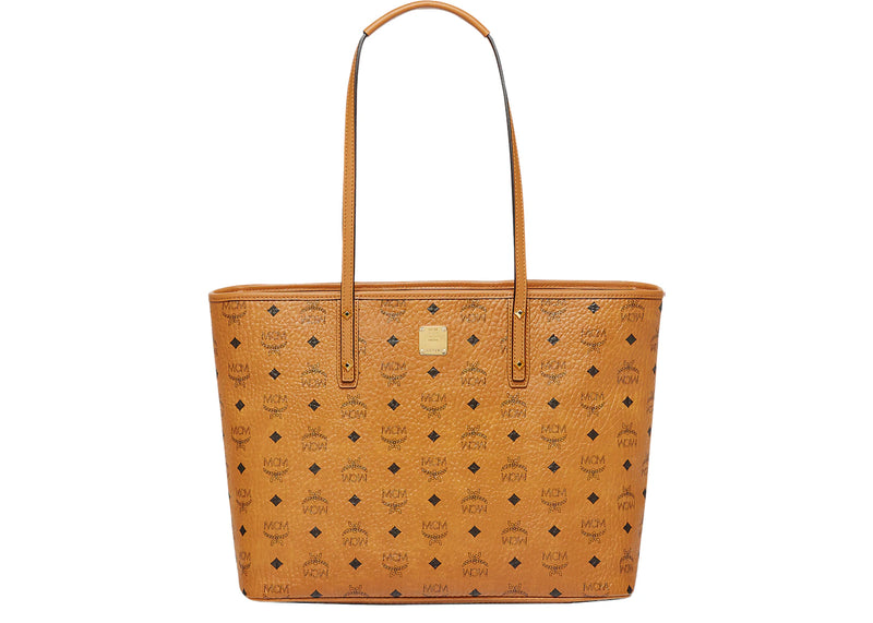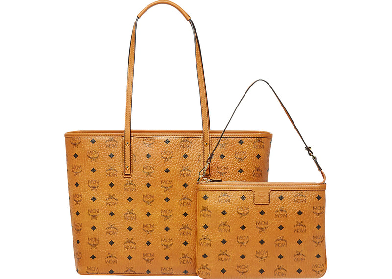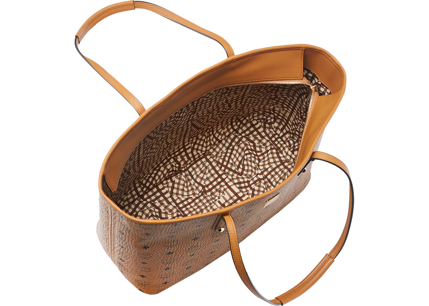 MCM Anya Top Zip Shopper Visetos Medium Cognac