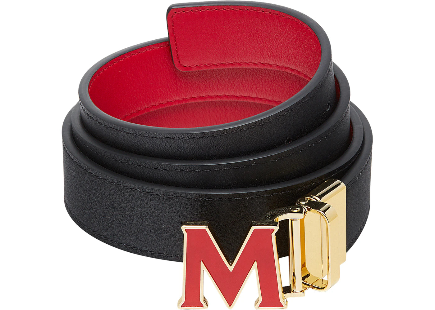 MCM Claus Enamel M Reversible Belt 1.2W Ruby Red/Black