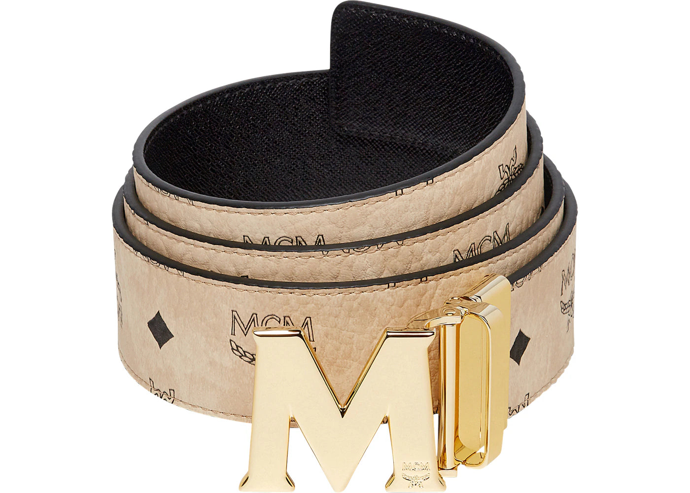 The MCM Claus M Reversible Belt Visetos 1.75W 51In/130Cm Beige is now available at Side Kicks!