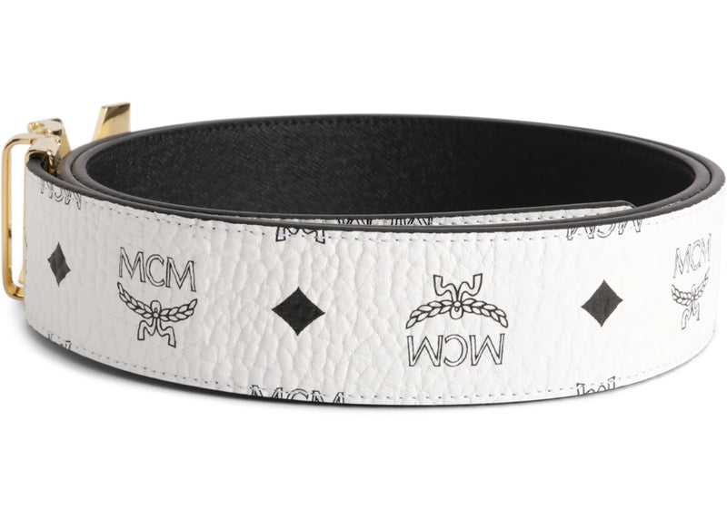 MCM Claus M Reversible Belt Visetos 1.75W 51In/130Cm White