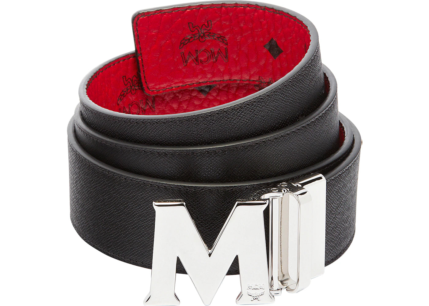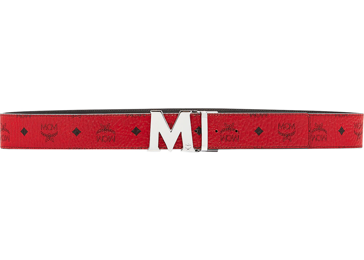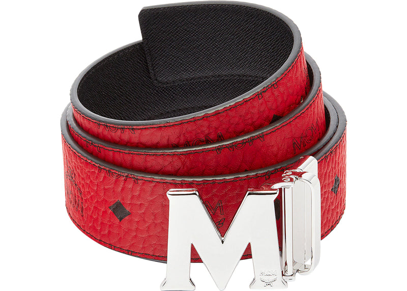 The MCM Claus M Reversible Belt Visetos Silver-tone 1.75W 51In/130Cm Ruby Red is now available at Side Kicks!