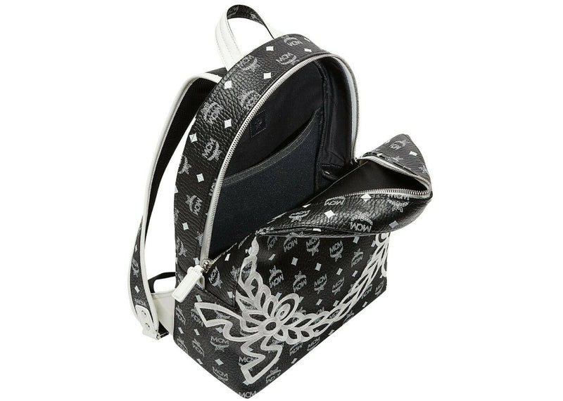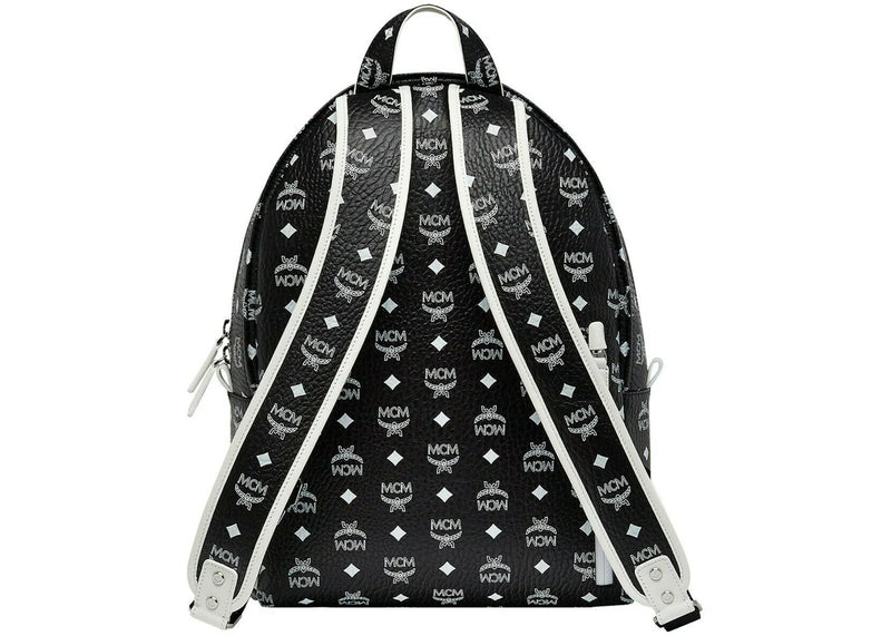 MCM Dietrich Laurel Backpack Visetos White Logo Medium Black