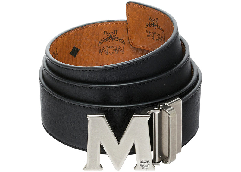 The MCM M Reversible Belt Visetos Antique Silver 1.75" Cognac is now available at Side Kicks!