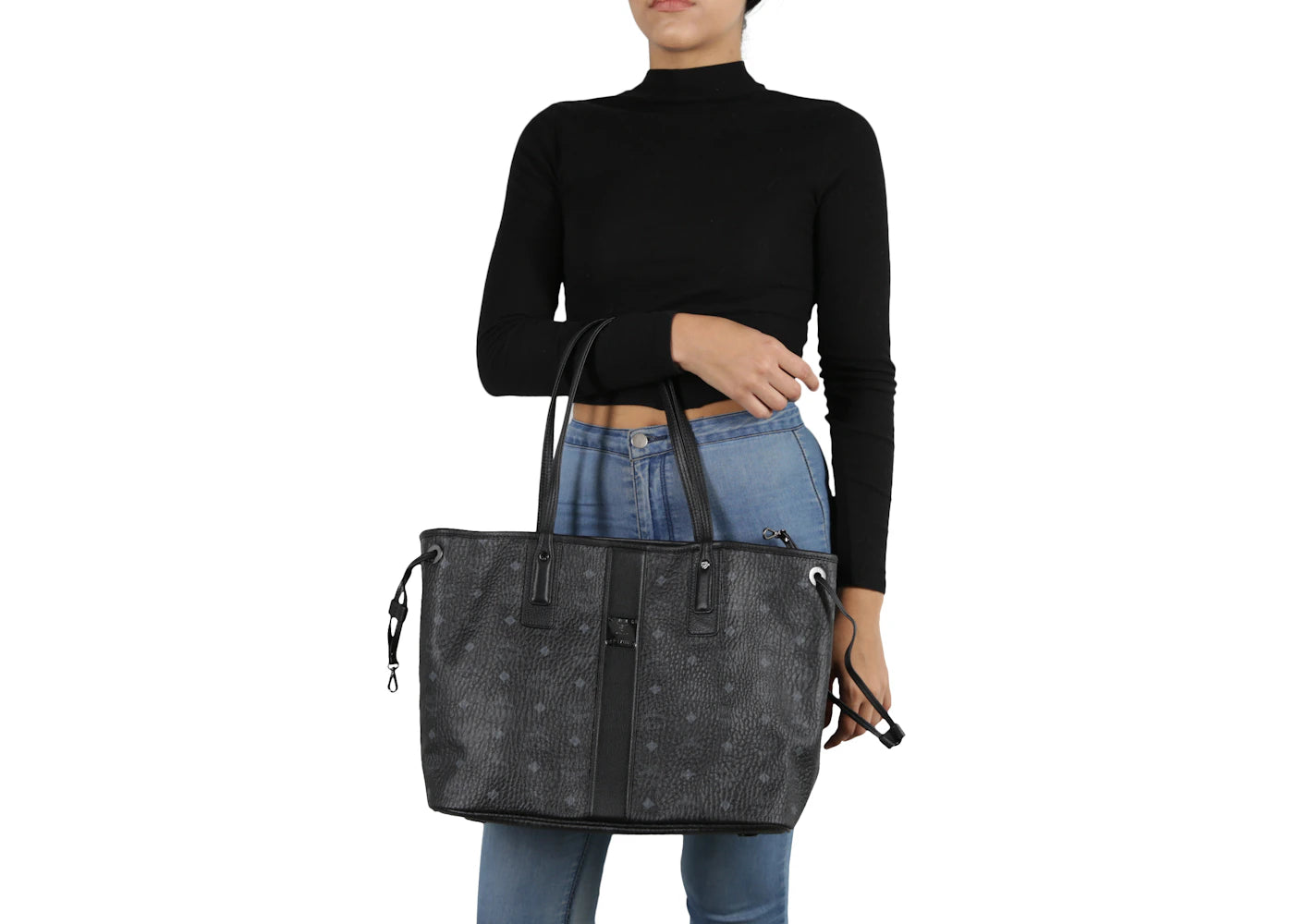 The MCM Reversible Liz Shopper Visetos Medium Black is now available at Side Kicks!