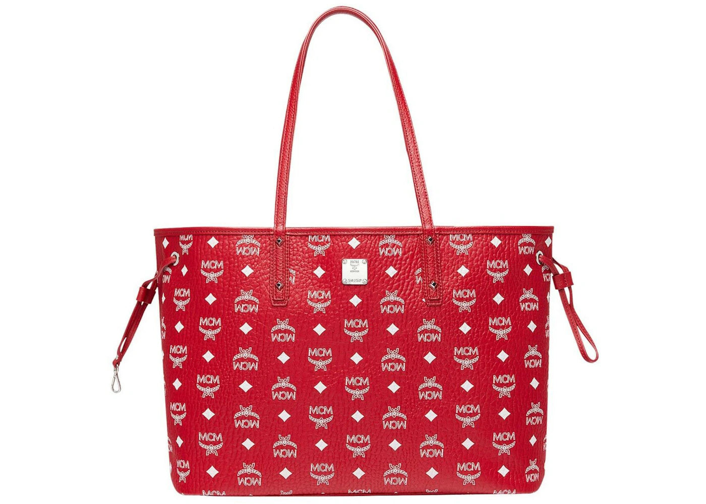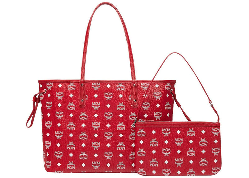 MCM Reversible Liz Shopper White Logo Medium Ruby Red