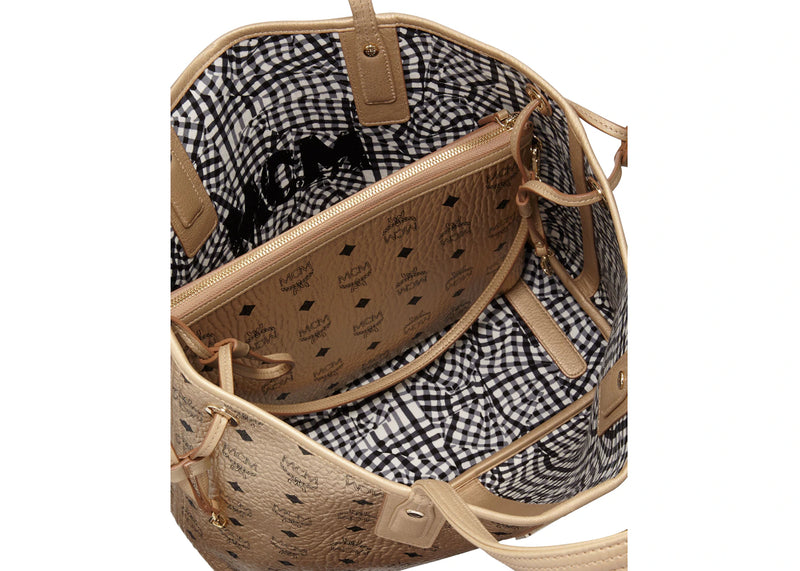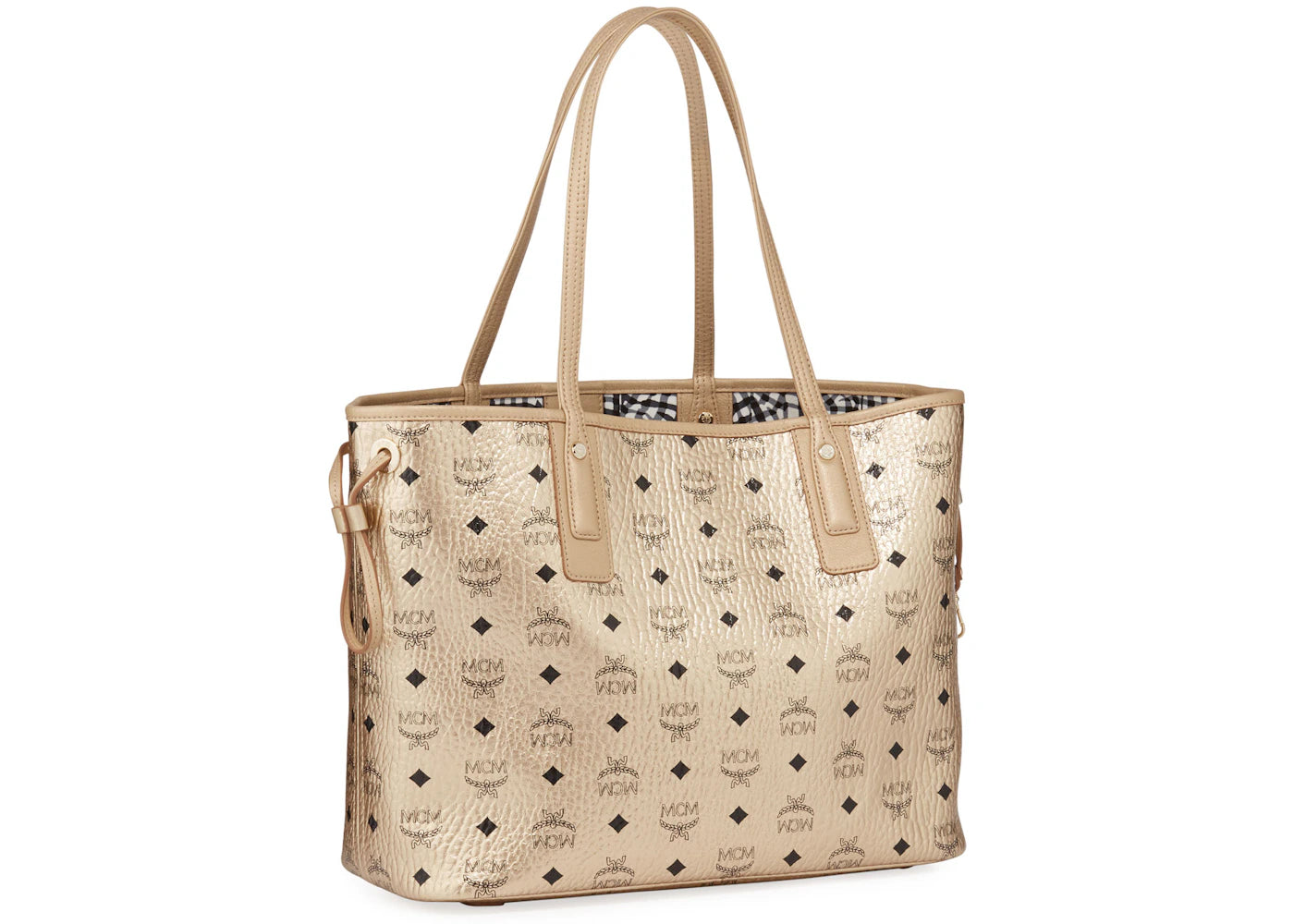 MCM Shopper Tote Bag Visetos Medium Metallic