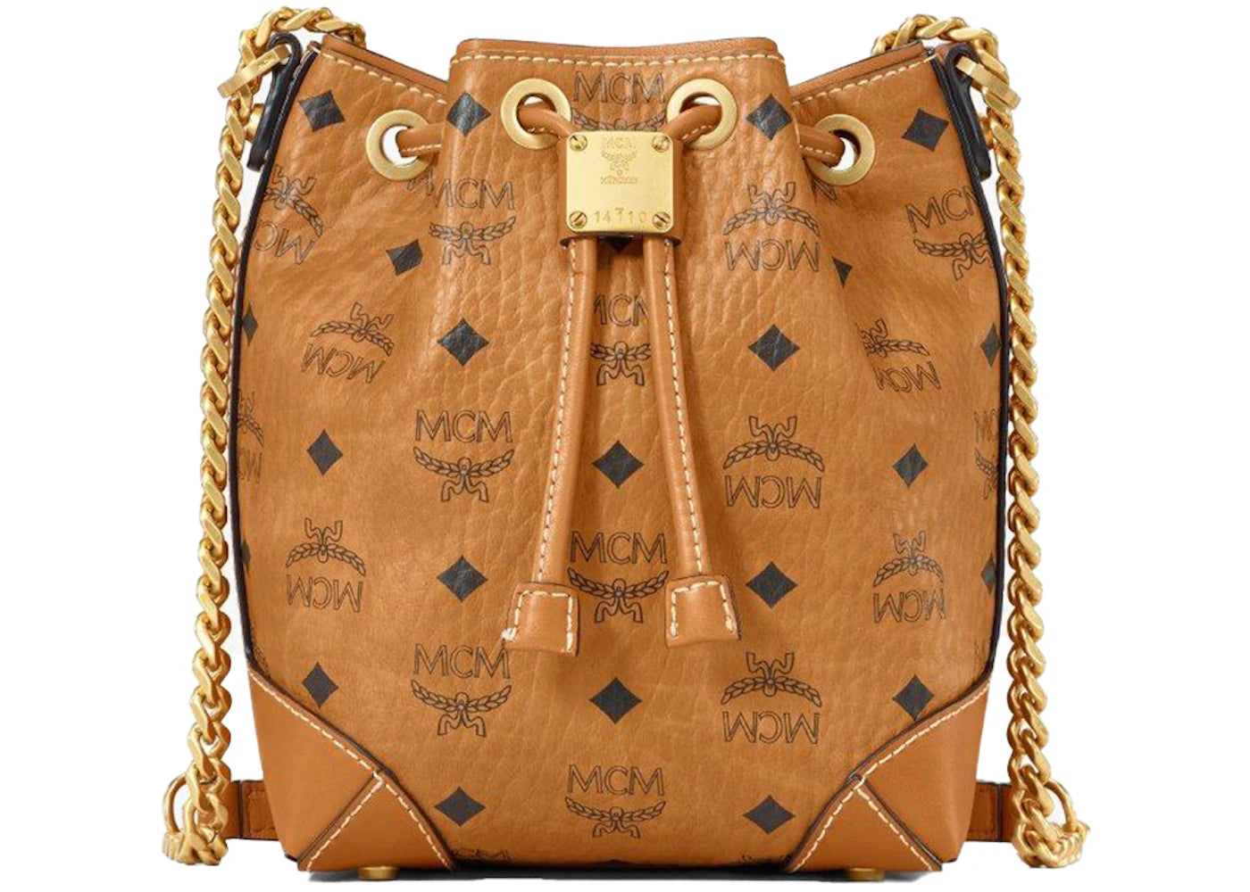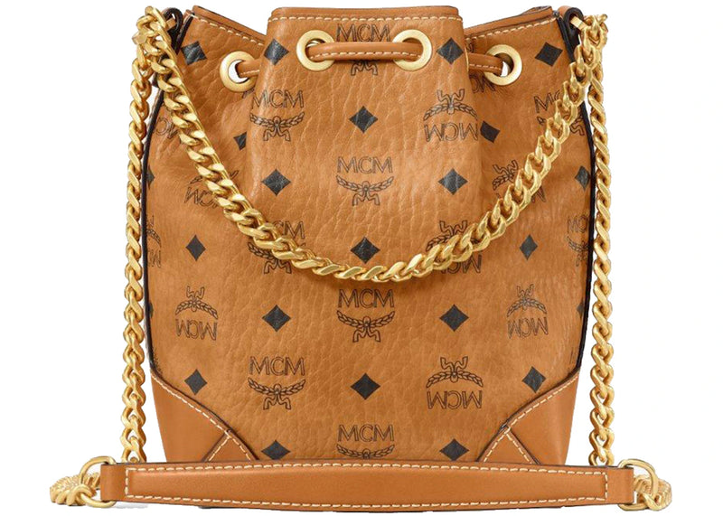 MCM Soft Berlin Drawstring Bag Mini Visetos Cognac