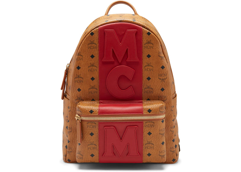 MCM Stark Backpack Visetos Logo Stripe Medium Cognac/Red
