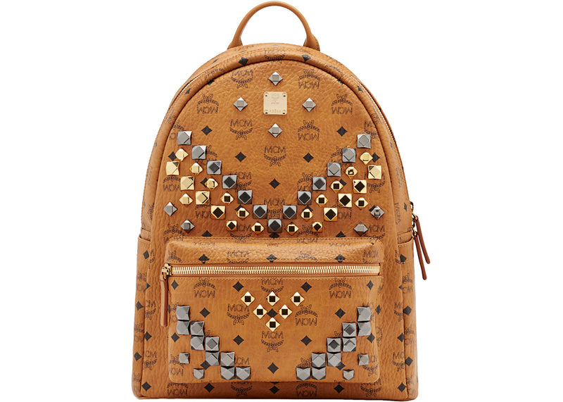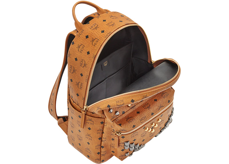 MCM Stark Backpack Visetos M Studs Medium Cognac