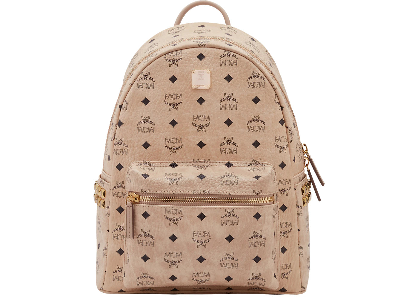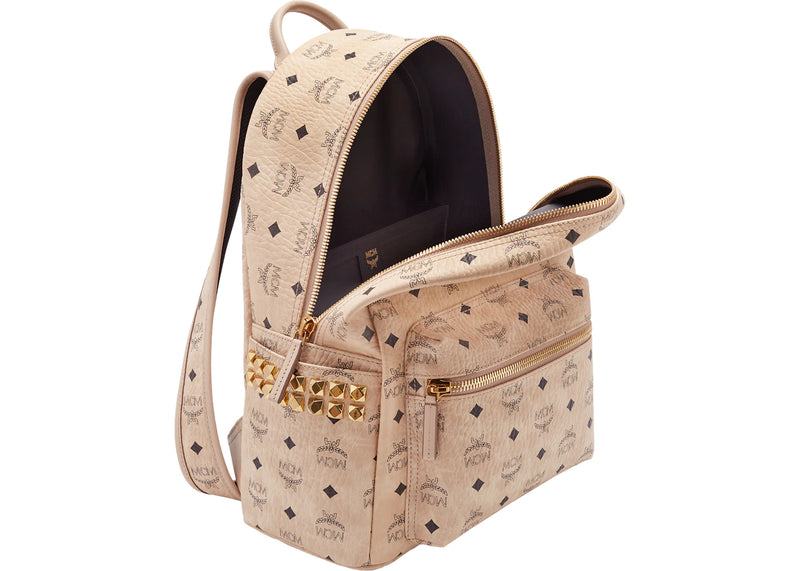 The MCM Stark Backpack Visetos Side Studs Beige is now available at Side Kicks!