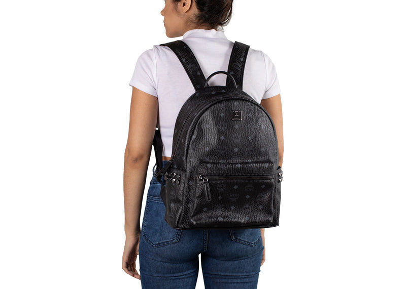 MCM Stark Backpack Visetos Side Studs Small/Medium Black
