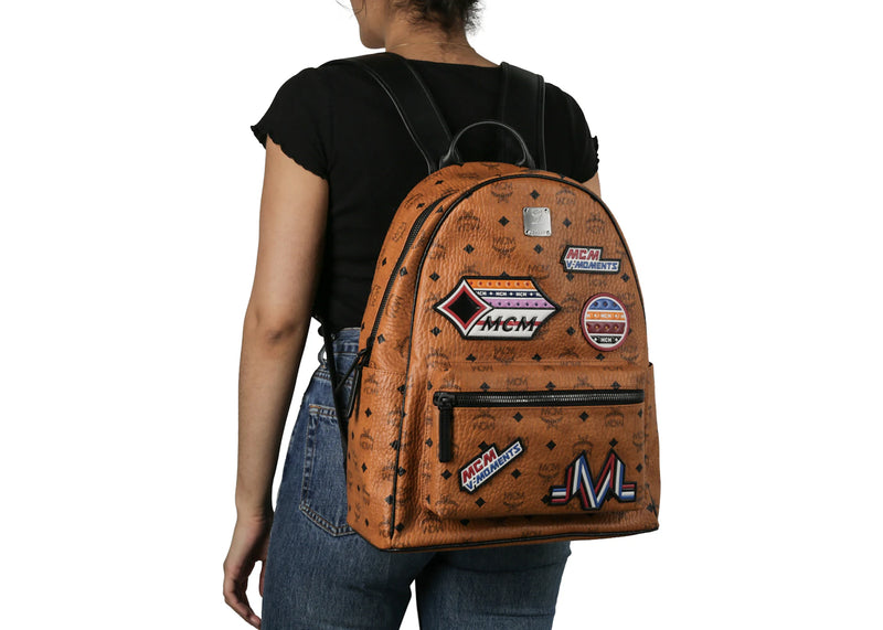 MCM Stark Backpack Visetos Victory Patches Medium Cognac