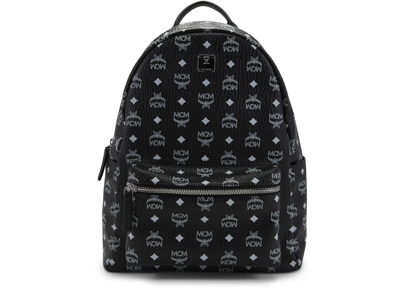 The MCM Stark Backpack Visetos White Logo Medium Black is now available at Side Kicks!