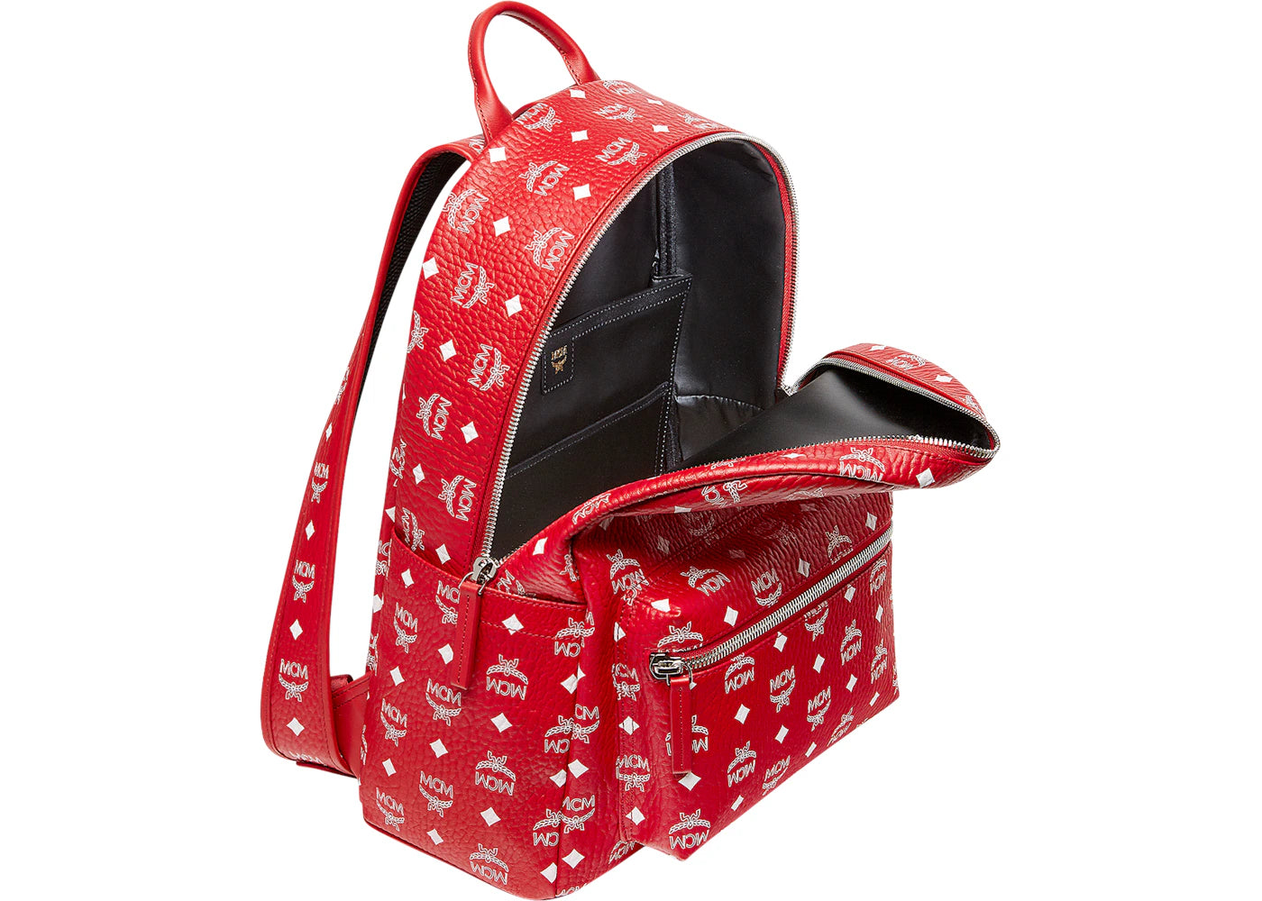 MCM Stark Backpack Visetos White Logo Medium Ruby Red
