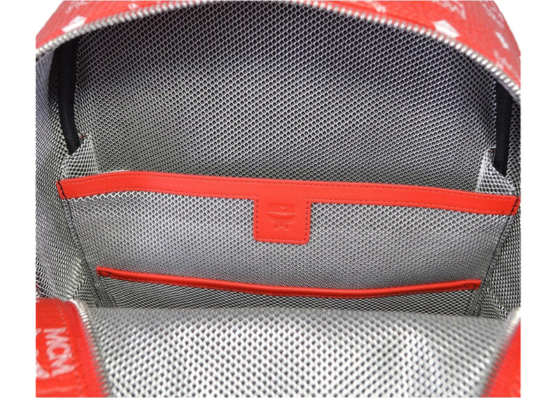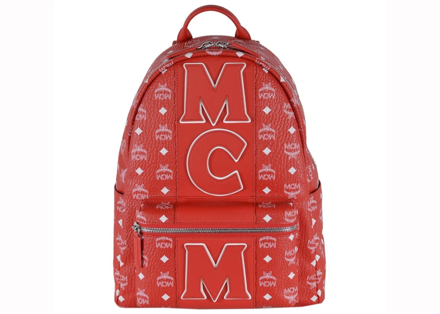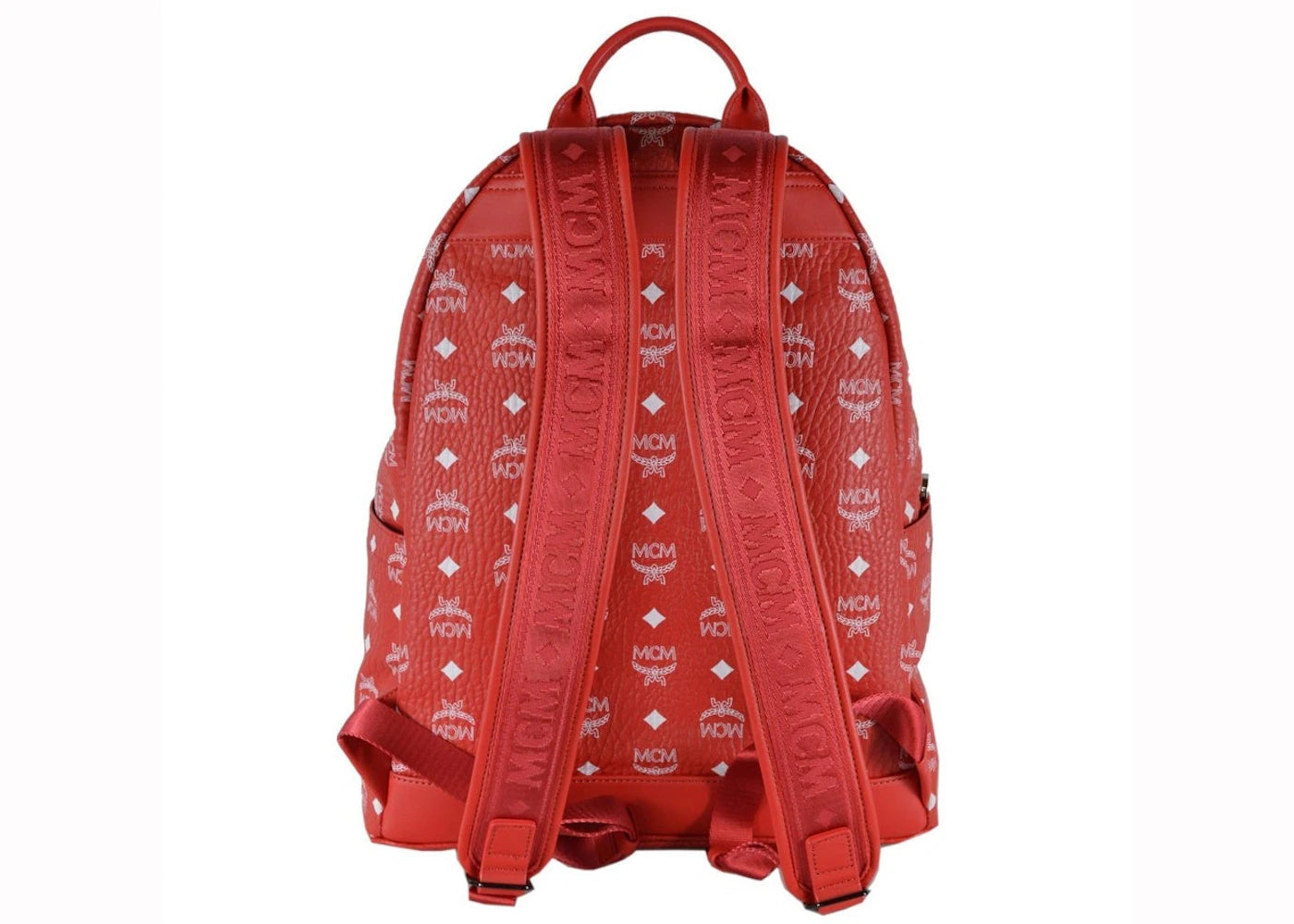 MCM Stark Backpack White Logo Stripe Medium Viva Red
